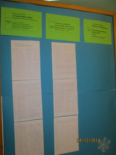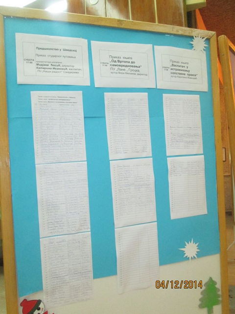 Пратећи садржаји за које је било велико интерсовање били су: Приказ пројекта ,,Учимо кроз игру“, извештај о размени искустава васпитача Балканских земаља у оквиру БАПТА, приказ студијског путовања, Предшколство у Шведској , приказ књиге „Од Вртопа до самовредновања“, „Васпитач у истраживању сопствене праксе“, приказ збирки :“Весела математика“ и „Ризница домаћих животиња“.