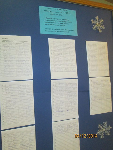 На округлом столу чија је тема била „Примена луткарског и драмског стваралаштва у васпитно-образовном процесу у циљу јачања дечјих и васпитачких компетенција“ где је модератор био проф др Јован Љуштановић, а уводничар мр Ана Миловановић, васпитачи су разменили искуства о потреби лутке у свакодневном раду. Договорено је да једна од тема на следећим сусретима буде из области луткарства.